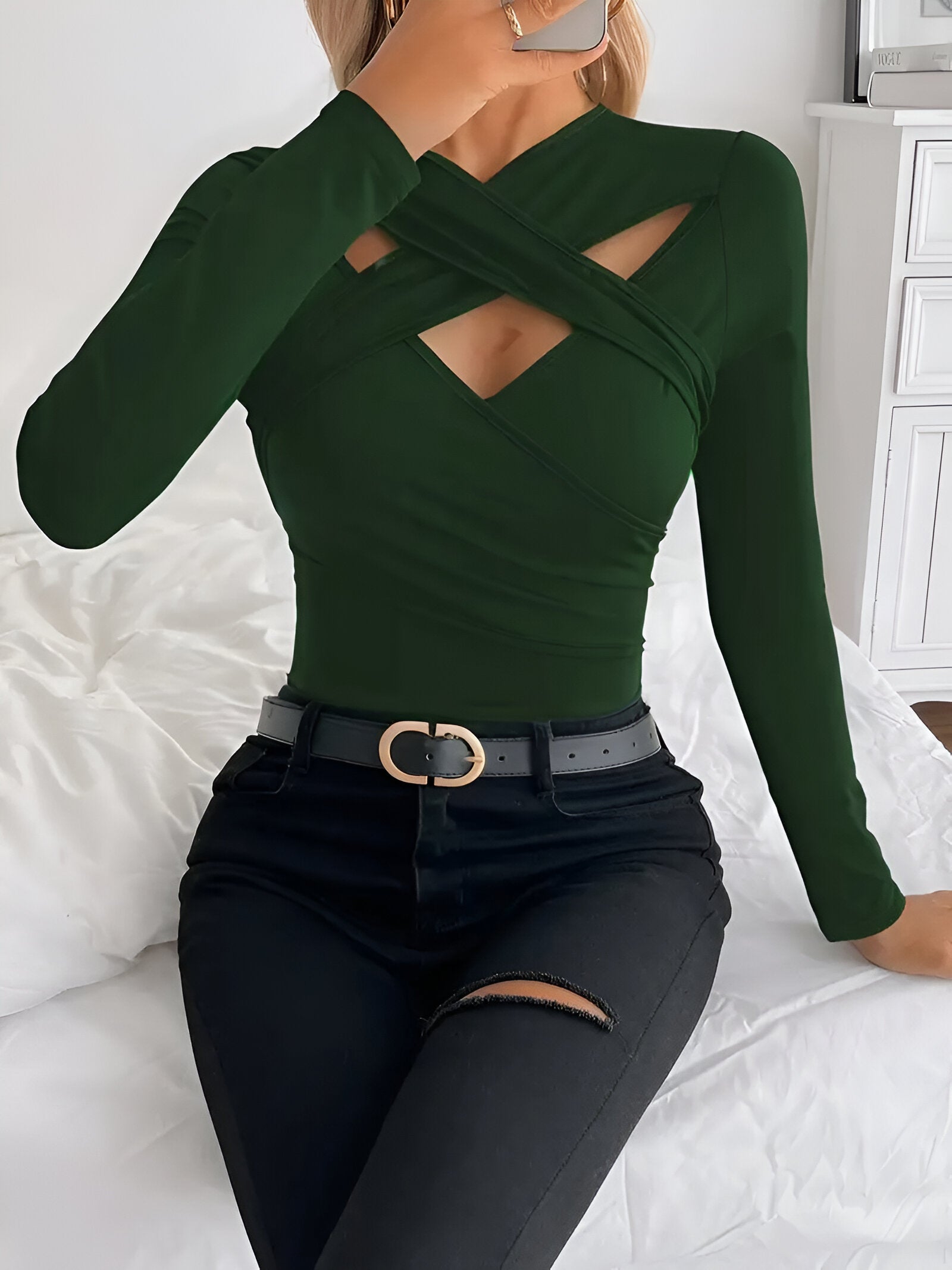 ✔ Diepe V-hals met gekruiste bandjes voor een stijlvolle twist