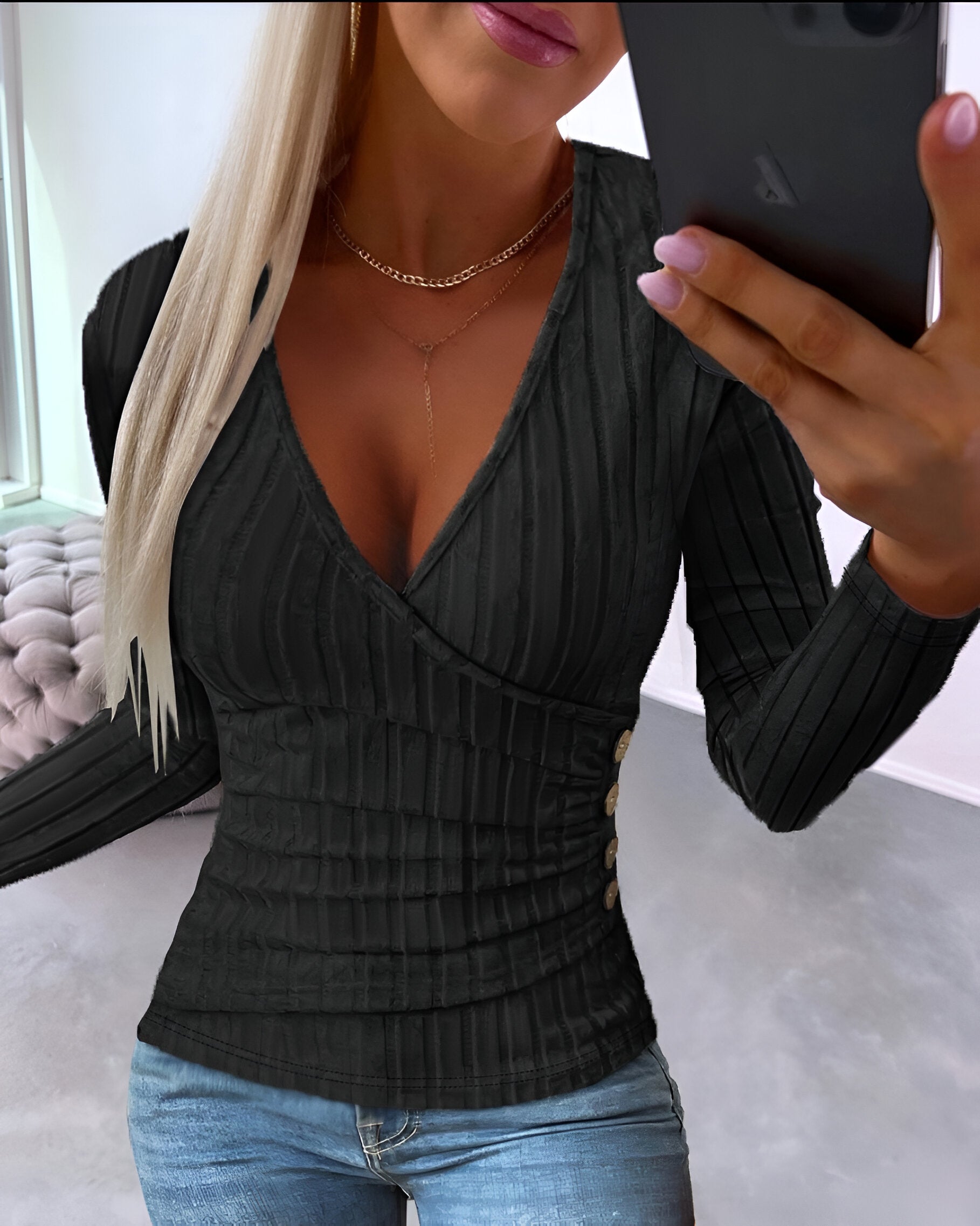 ✔ Diepe V-hals en lange mouwen voor een elegante, verfijnde look