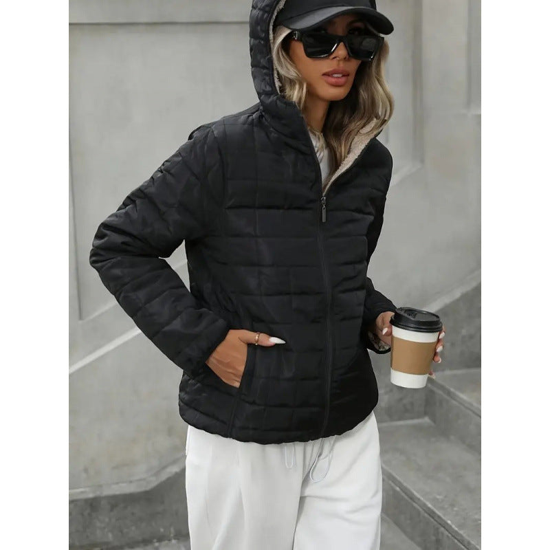 ✓ Warme gewatteerde voering met capuchon en ritssluiting