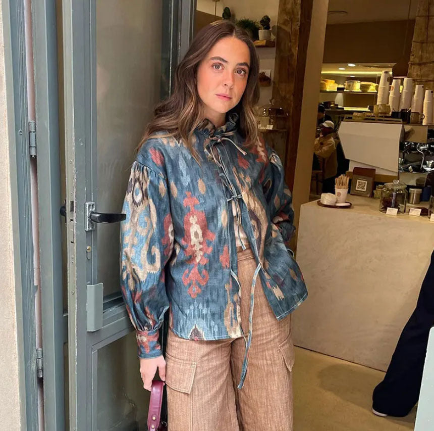 Claudia Overshirt Jas | Trendy Dames Overshirt met Taillekoord en Uniek Patroon