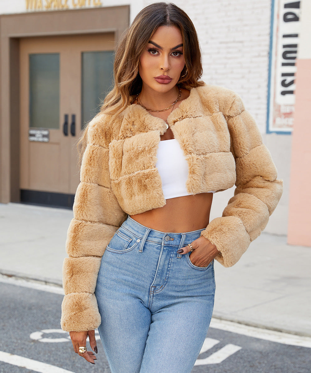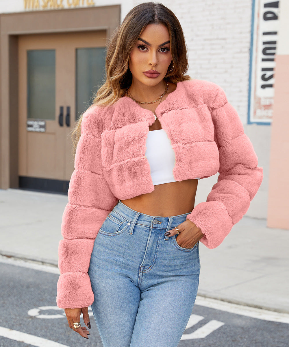 Elena Gewatteerde Jas | Korte Dames Jas van Zacht Kunstbont met Trendy Gestikt Design