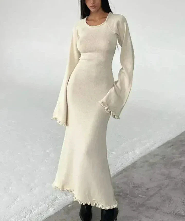 Giulia Jurk | Bohemian Gebreide Maxi Jurk met Ruches voor Dames