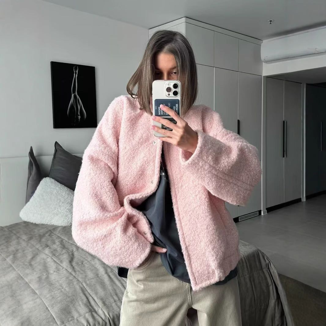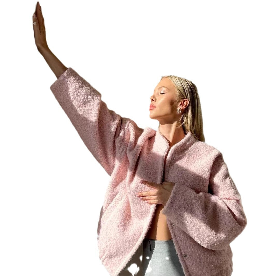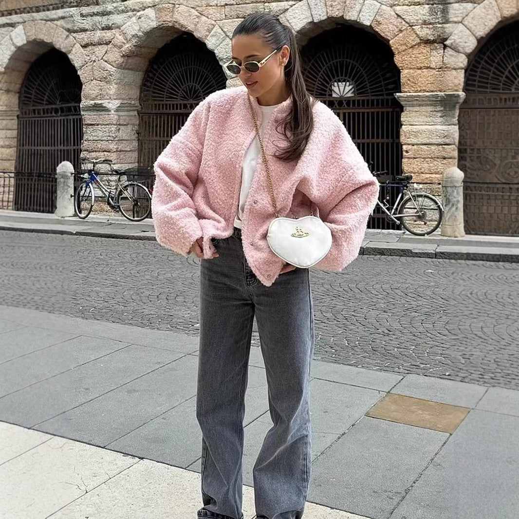 Livia Roze Teddy Jas | Warme Damesjas van Wolmix met Zachte Teddystructuur