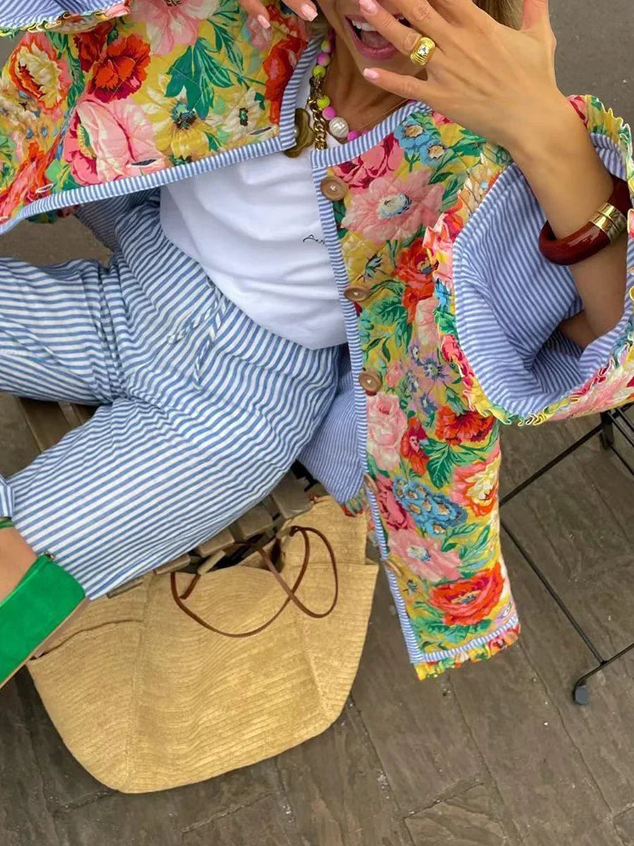 NANCE - Lichtgewicht zomerjas met bloemenprint en Uitlopende mouwen