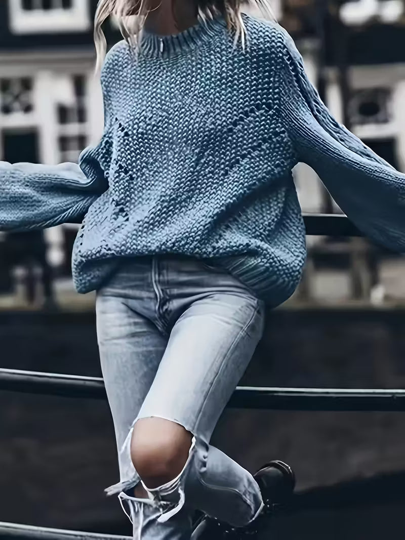 Nina Trui | Dames gebreide trui met geometrisch patroon en ronde hals