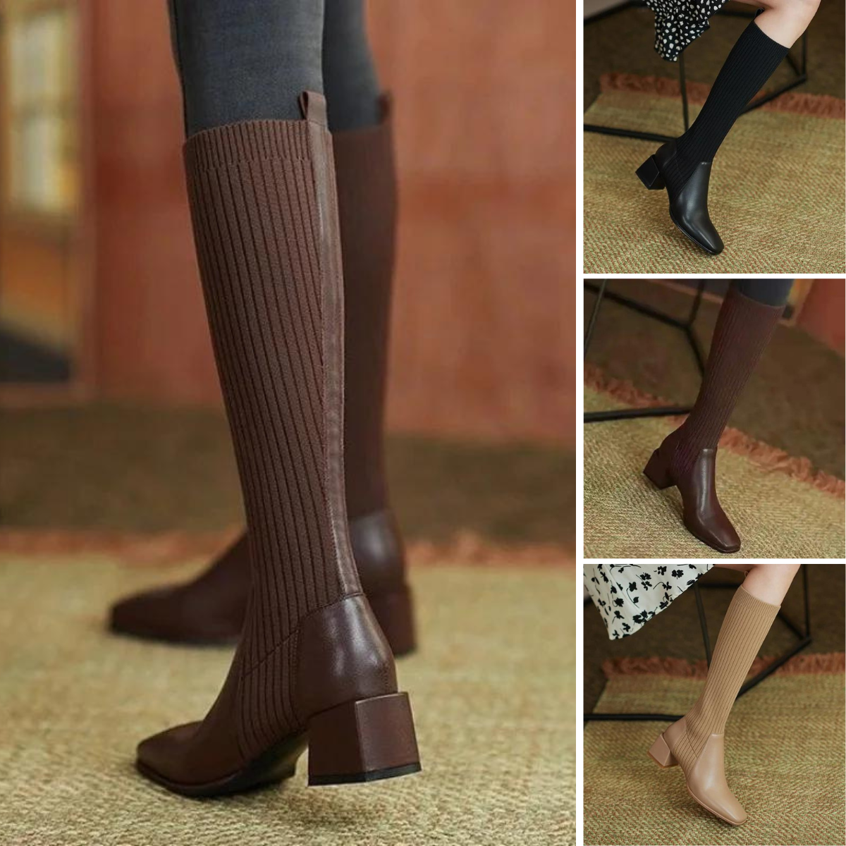 Stap de winter in met stijl en warmte in onze SEAM winterlaarzen met hoge hak en gebreide sokken!