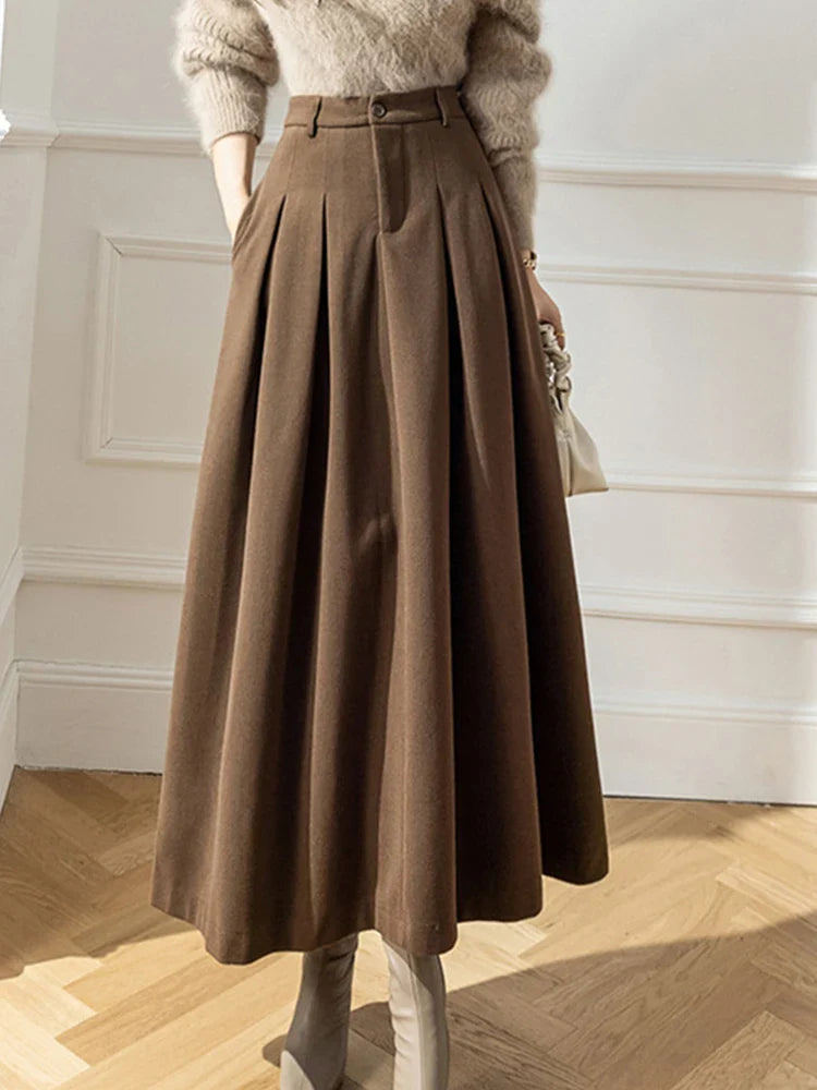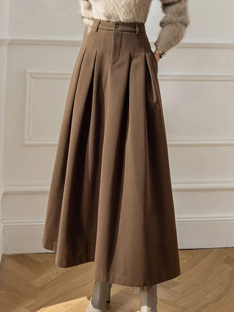 Hoogwaardige stoffen – De rok is vervaardigd van een zachte, ademende wolblend die een luxueus draaggevoel biedt.