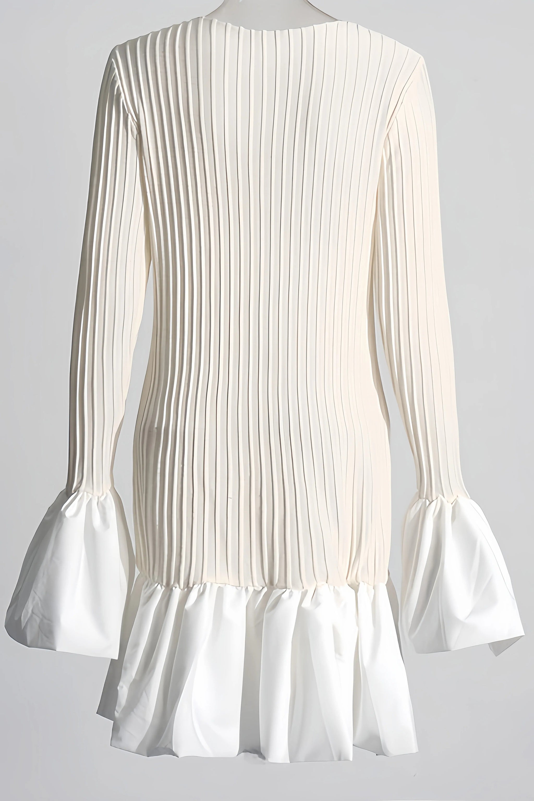 Bianca Jurk | Geplooide Mini Jurk met Uitlopende Mouwen en Comfortabele Pasvorm