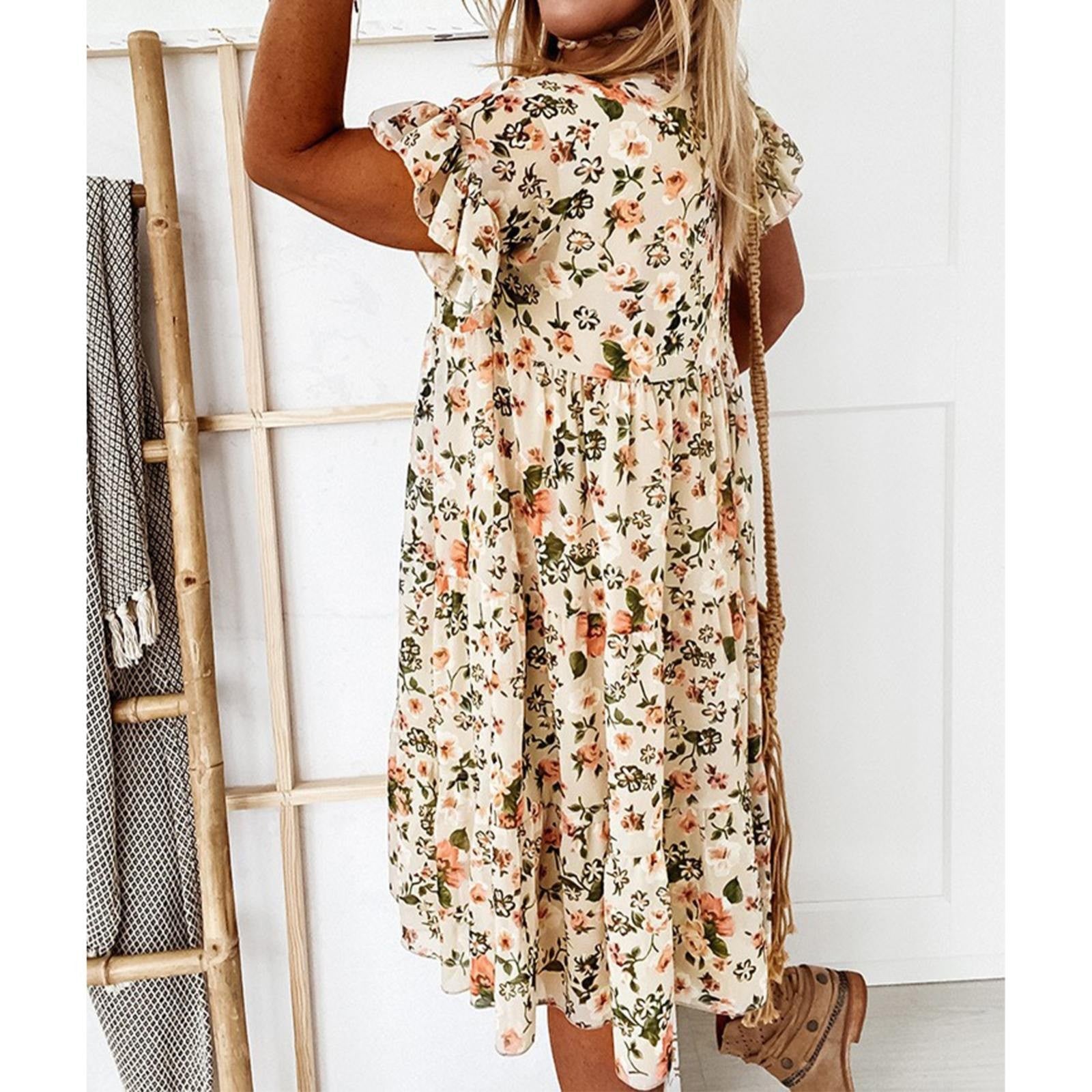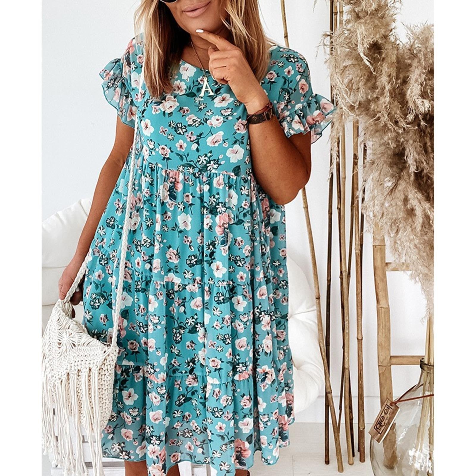 Lucia Jurk | Bloemenprint Zomerjurk met Ruches en Luchtige A-lijn Pasvorm
