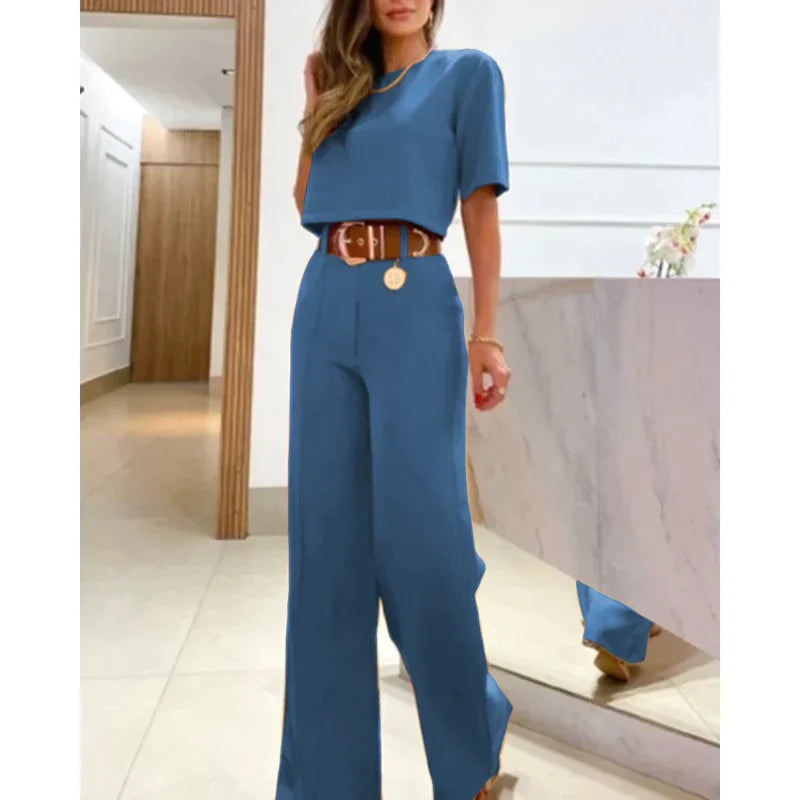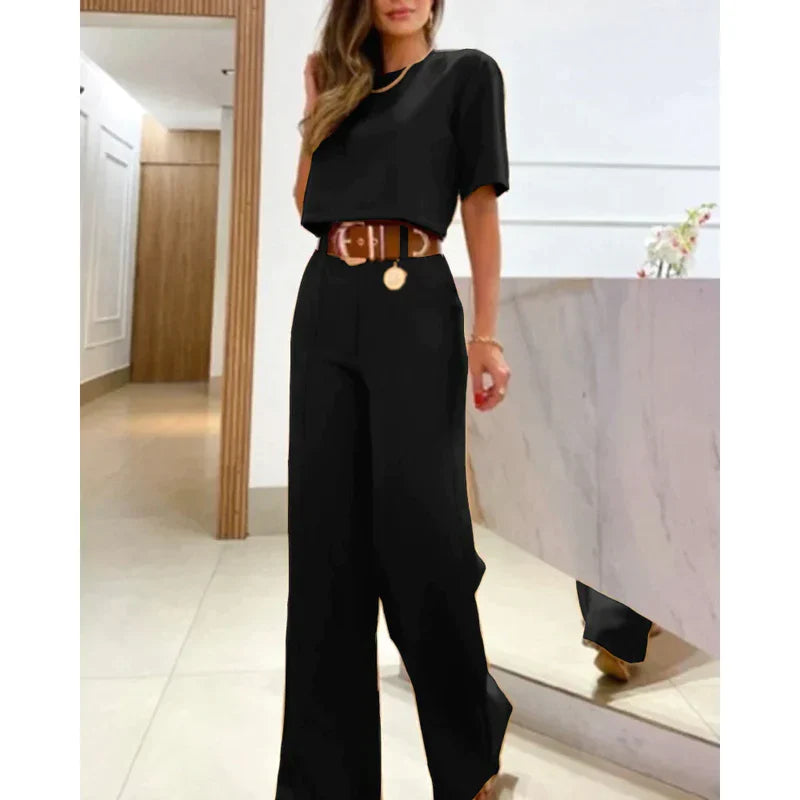 Ben je klaar om moeiteloos stijl en draagcomfort te combineren? Swena is jouw onmisbare accessoire om je garderobe te transformeren en overal in het middelpunt van de belangstelling te staan. Met haar prachtig getailleerde broek en bijpassende top combineert dit trendy ensemble verfijning naadloos met draagcomfort.